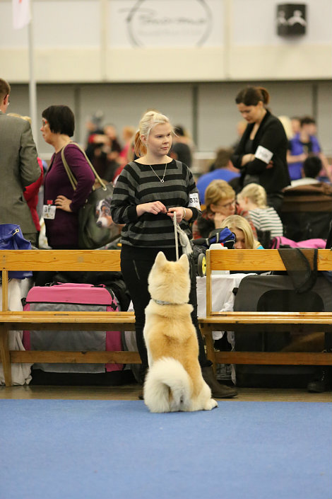 Johan jännitti kehän laidalla jo ennen kehää katsoa mitä tulee, sillä tuomari ei antanut meitä edeltävälle rodulle, amerikanakitoille, yhtään SA:ta. Ja Daikihan oli jahtaamassa viimeistä sertiään. Ilo oli käsin kosketeltavaa kun Daiki kävi pokaamassa sertin, oli VPS ja näin ollen tuore Suomen Muotovalio! Mahtavaa, suuren suuret onnittelut Päivi!!! Ja Kristalle suuret kiitokset handlauksesta! Kiitokset tuomareille.